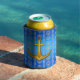 Cool Can Cooler For Summer Soda or Beer Cans, Featuring our Gold Anchor Blue Cerulean Design
