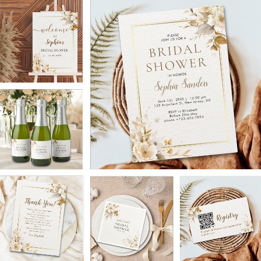Celebrate your next wedding in style with our elegant floral themed design in gold and beige, beautifully embellished with gold and beige details. This sophisticated design sets the perfect tone for a memorable gathering, inviting your guests to join the joyful occasion with grace and charm. Let this exquisite design be the first glimpse of your bridal shower.