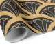 Gold and Black Art Deco Fan Flower Pattern Wrapping Paper