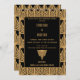 Gold yellow and black art deco retro pattern rehearsal dinner invitations. 1920's style.