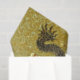 Tissue paper with image of a black and gold Chinese dragon against a glittery gold background.