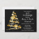 This elegant and chic holiday gift exchange invitation features a gold and black ribbon Christmas tree with presents. The text combines handwritten script and modern sans serif fonts for a classy and sophisticated look. The falling snow, glitter and sparkles give a festive and magical touch.