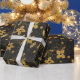 This elegant and glamourous wrapping paper is versatile and can be used for giving gifts or art and craft projects. It is ideal for any occasion such as Christmas, birthdays, weddings, bridal showers, baby showers, anniversaries or general gifts. The design features faux gold glitter poinsettia flowers on a black background. Perfect for the holiday season.