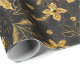 Gold and Black Christmas Poinsettia Flowers Wrapping Paper