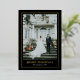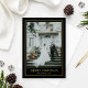 Simply elegant holiday photo card features a portrait picture with a decorative yet minimalistic gold foil border frame of intersecting stripes. Includes "Merry Christmas" wording in beautiful scrolling serif typography with black coloured background - can be modified. Bonus optional photo and wording can be personalised on the back of the card.