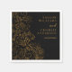 This elegant wedding napkin features a delicate floral ornamental design with flowers, birds and leaves on a gold and black background. The text combines handwritten script and serif fonts for a stylish and modern look. Perfect for a winter or autumn fall wedding.