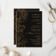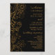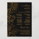 This elegant wedding program features a delicate floral ornamental design with flowers, birds and leaves on a gold and black background. The text combines handwritten script and serif fonts for a stylish and modern look. Perfect for a winter or autumn fall wedding.