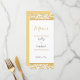An Elegant Gold and Black Wedding Reception Menu Card designed with stylish gold coloured trim on a white background with black text including: the Bride and Groom's Names and Wedding Date. The reverse side includes the text: Menu, Appetizer, Entre and Dessert Selections on a matching gold coloured background. To personalise, simply insert your details into our easy template, replacing the sample text. Be sure to view the entire Gold and Black Elegant Style Wedding Collection.
