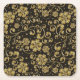 Gold and Black Floral Pattern Square Paper Coaster