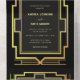 Gold and Black Gatsby Frame Retro Art Deco Wedding All In One Invitation