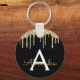 Gold and Black Girly Sparkly Glitter Monogram Key Ring