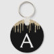 Gold and Black Girly Sparkly Glitter Monogram Key Ring