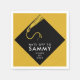 Graduation class of 25 party napkins featuring black cap design and congratulations line on a gold background. Edit text to add grad's name and the year.