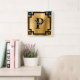 Gold and Black Greek Key Border Monogram Square Wall Clock