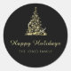 Gold and Black Happy Holidays Sparkling Christmas Tree Classic Round Sticker