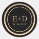 Simple, modern, elegant, gold and black monogram wedding stickers for envelope seals, with custom initials and date.