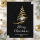 This elegant and chic holiday card can be personalised with your family name. The design features a gold and black ribbon Christmas tree with a bauble. The text combines handwritten script and modern sans serif fonts for a classy and sophisticated look. The falling snow, snowflakes and sparkles give a festive and magical touch.