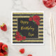 Gold And Black Stripes Glitter Red Roses Birthday Napkin