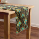Gold and blue Art Deco pattern on black Long Table Runner