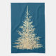 Gold and blue evergreen tree elegant winter tea towel
