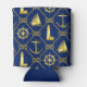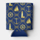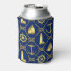 This can cooler is great for boat captains or anyone that loves the sea. Gold nautical elements and gold rope with nautical knots form a classic elegant nautical pattern which stands out against a dark blue background.