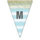 Banner with "welcome baby" wordings, faux gold glitter design and blue stripes pattern background.