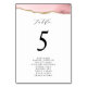 elegant blush and gold watercolor agate. Table number card seating chart with modern calligraphy.