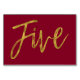 Gold and Burgundy Maroon Elegant Typography Table Number Five.