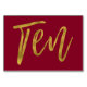 Gold and Burgundy Elegant Typography Table Number Ten.