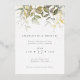 Elegant botanical greenery wedding invitation featuring watercolor foliage and gold foil leaves.