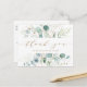 This business thank you postcard features painted watercolor eucalyptus, botanical green and gold glitter leaves with gold script.