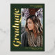 Modern and simple real gold foil and dark forest green graduate script open house photo graduation. Add 3 of your favourite photos with an elegant retro style font and photo grid collage