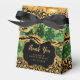This gold and green safari themed agate birthday thank you favour box features leopard spots, tiger stripes and snake scales. The text combines handwritten script and modern sans serif fonts for a classy and sophisticated look. The faux gold glitter accents and abstract animal print creates the perfect blend of chic and stylish.