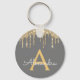 Gold and Grey Girly Sparkly Glitter Monogram Key Ring