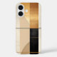 Wide, gold and black vertical bands, and narrow gold and black horizontal lines on an ivory and tan colour block background create an elegant, luxurious, and modern art phone case.