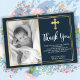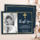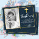 Gold and Navy Blue Baptism Photo Thank You Cards