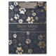Gold and navy paw print pattern clip board, perfect for any animal lover or business.