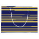 Gold and navy stripes patterned large gift bag