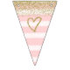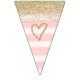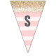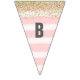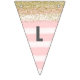 Banner with "bridal shower" wordings, faux gold glitter design and pink stripes pattern background.