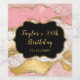 This elegant and glamourous birthday wine label features a pink and white agate marble background with faux gold glitter accents. The text combines handwritten script and modern sans serif fonts for a classy and sophisticated look. The sequins and distressed texture creates the perfect blend of chic and grunge.