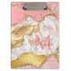 This clipboard features an elegant and glamourous pink and white agate marble background with faux gold glitter accents. The monogram combines handwritten script and modern sans serif fonts for a classy and sophisticated look. This will make the ideal gift as it can be customised with a name and initial. The sequins and distressed texture creates the perfect blend of chic and grunge.