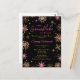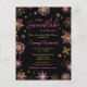 This elegant and glamourous invitation postcard features watercolor gold and pink faux glitter snowflakes and sparkles on a black background. It is perfect for a winter or Christmas themed baby shower.