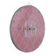This Dart Board features a gold and pink glittery cover with a monogram script design, perfect for those who love girly and glamorous aesthetics.