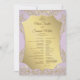 This wedding program blends romantic charm with timeless elegance, featuring a soft pink background enhanced with ornate golden damask flourishes. The program details are displayed on a radiant gold panel, creating a graceful contrast that highlights both beauty and sophistication. The gold and pink colour palette adds a luxurious yet romantic style, perfect for elegant and memorable wedding celebrations.