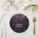 Gold and plum purple wedding paper plates with shooting star and starry night