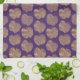 Kitchen towel with a pattern of golden textured apples on dark purple.