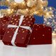 Gold and Red Confetti Hearts Christmas