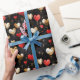 Gold and Red Hearts on Black Luxury Wrapping Paper