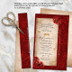 Create your own custom DIY scroll invitations in beautiful shades of red and gold using a unique, easy template. Simply cut along the guidelines, and roll them with or without a dowel, ribbon, etc. for a true magical mediaeval fairytale feel. The original art by Raphaela Wilson spotlights watercolor red roses, faux metallic yellow gold butterfly glitter confetti, a vintage queen crown / princess tiara, and an elegant filigree border with a fancy gown / dress design. The simple flexible editable template card includes 5" width guidelines for cutting that are adjustable to create scroll invites as small or large in width as desired. Be sure to keep the parchment paper at the displayed 8.5" x 11" sheet size, and the 5 inch width trim lines can assist you in cutting red quinceanera invitation scrolls that will beautifully fit using a 6" dowel or rod. The matte paper type works best for rolling since it's a thinner paper stock compared to other available stationery selections. If reworded, these cool floral quinceañera invitations can also be ideal for royal red rose weddings, a beauty and the beast themed sweet 16 birthday party, once upon a time baby shower for a girl, Cinderella princess bridal shower, or other joyous celebrations. By further customising the whimsical fairy tale design, other creative options are at your fingertips. Feel free to switch up the elegant black script calligraphy ("My Quinceanera") and modern typography to another style that best suits your fancy. Even shift around the art (ie. border, roses parchment paper) if you'd like to make room for a glamourous mis quince anos photo / picture. With the old aged scroll parchment paper texture located on both sides of the paper sheet, these luxurious DIY custom scroll invitations are beautiful when rolled up. Category: scroll wedding invitations with butterflies; handmade scroll wedding invitations; and RSVP DIY quinceanera scroll invitations. Red and gold quince theme party colours: dark red, burgundy, maroon, marsala, yellow champagne gold, light brown, tan, and black.