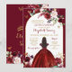 Gold and Red Roses Floral Quinceañera Invitation